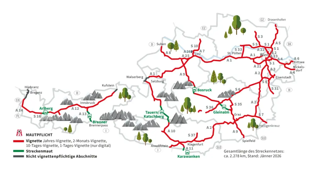 Neben der digitalen Vignette gibt es bis Ende 2026 noch die Klebevariante der Vignette. Es wird die letzte Klebevignette sein, denn ab 2027 wird es ausschließlich die digitale Variante geben. Ab 20. November 2025 ist die Klebevignette 2026 an über 6.000 Vertriebsstellen im In- und Ausland erhältlich.